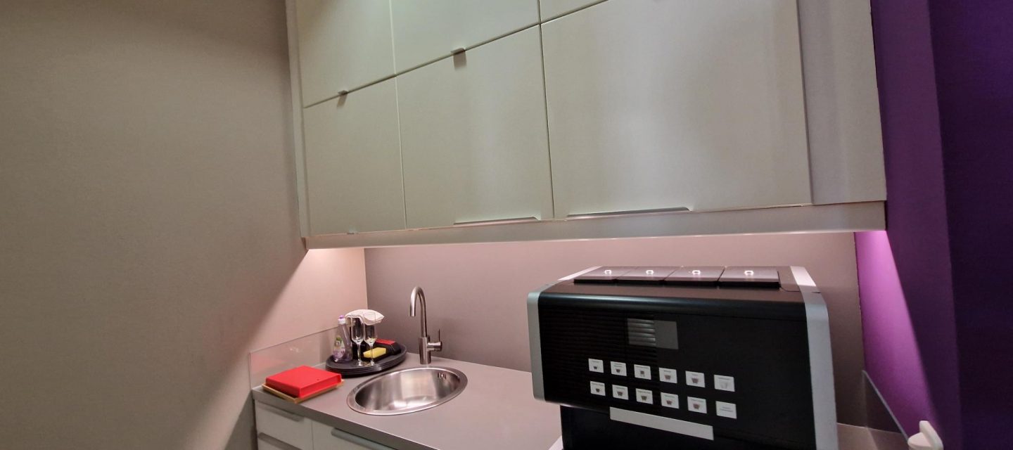 In 1110 Wien steht ab sofort diese moderne, italienische Kaffeemaschine von rheavendors in einer kleinen Kaffeeküche einer Firma, die im Bereich Umwelttechnologie erfolgreich arbeitet.